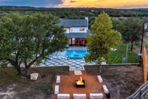 A design-build transformation featuring custom stone paving, artificial turf, dramatic firepit, pool features, and structurally superior outdoor living defined by Certified Expertise.